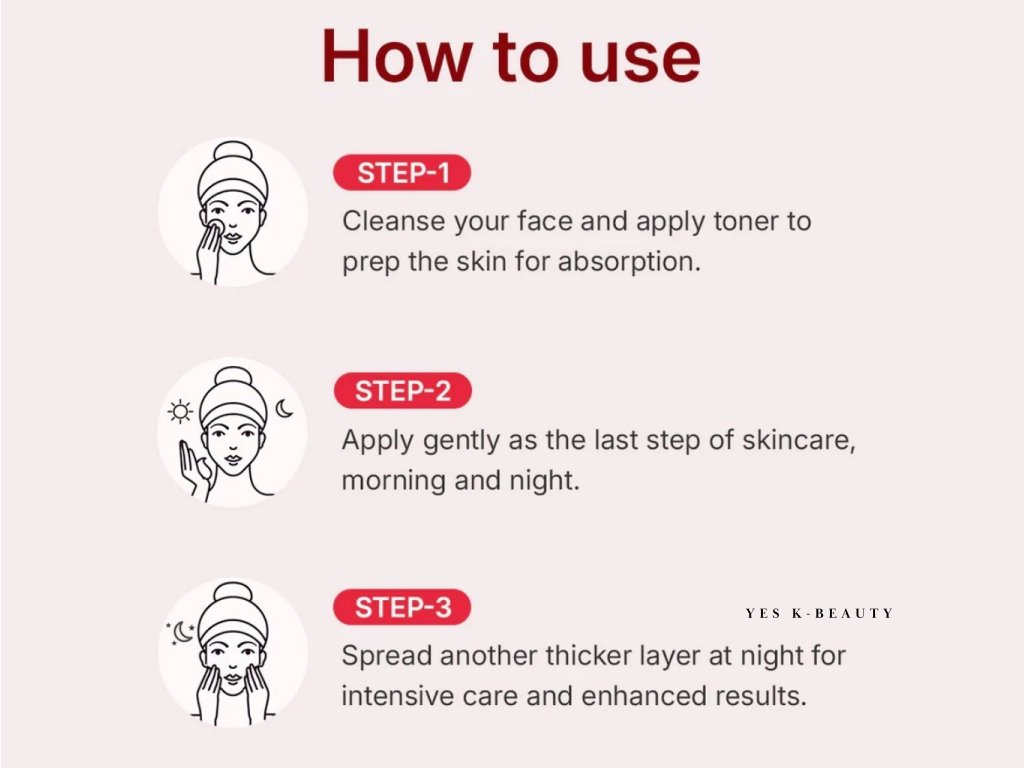 Naneste primerané množstvo na vyčistenú pleť ako posledný krok starostlivosti. Jemne vmasírujte do pokožky, kým sa úplne nevstrebe.