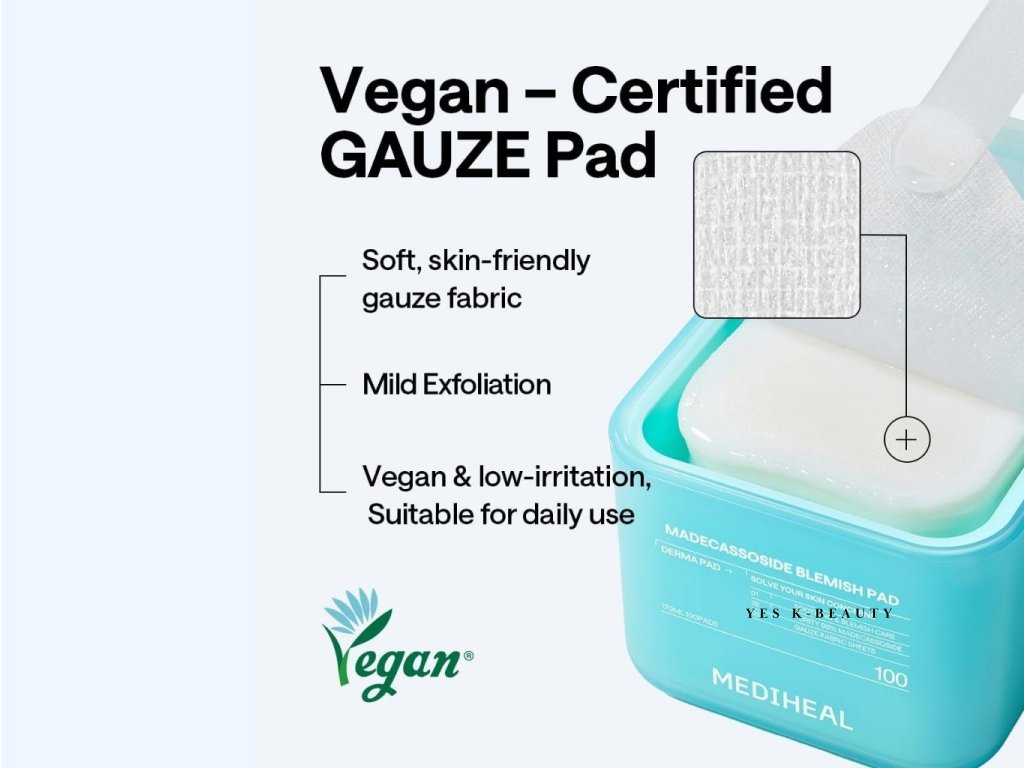 Mediheal MADECASSOSIDE BLEMISH PAD kombinuje exfoliační a zklidňující účinky pro každodenní péči o problematickou pokožku. Obsahuje madecassoside, který zklidňuje podráždění a podporuje obnovu ochranné bariéry pleti. Tampony jsou napuštěny esencí, která pomáhá redukovat začervenání, kontrolovat přebytečný sebum a zanechává pleť jemnou a svěží. Ideální jako rychlý krok po čištění nebo jako součást pravidelné péče.